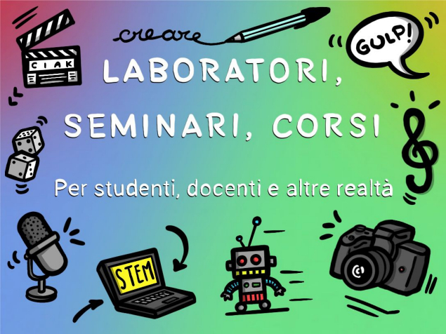 Accanto agli spettacoli, anche laboratori educativi e percorsi formativi: niente corsi online! Realizziamo laboratori in presenza per studenti dedicati all'invenzione delle storie e alla loro trasformazione in diversi linguaggi, e seminari per docenti su scrittura creativa con l'AI, creazione di podcast, teatro, disegno digitale e fumetto, cinema, robotica e molto altro.
